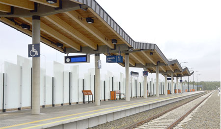 Jak się nie wrzuci pieniążka, barierka się nie otworzy i tyle! W związku z tym zgłaszamy taki pomysł – może by i w Szczytnie postawić takie urządzenia, np. na placu Juranda? Nie mniej nowoczesny od terminalu lotniczego jest jego odpowiednik kolejowy. Wiata nad peronem ciągnie się na całej jego długości. Jest tu też wyodrębnione miejsce dla inwalidy oraz elektroniczne tablice informujące o odjazdach i przyjazdach wraz z zegarami.