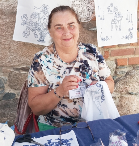 W gronie tegorocznych wystawców znalazła się Krystyna Jurewicz, która na jarmark do Szczytna przyjeżdża co roku, niemal od samego początku. Przywozi ze sobą m.in. makatki, wyszywanki i robione na szydełku sakiewki ozdabiane tradycyjnymi motywami z Warmii i Mazur. Pani Krystyna ma na koncie wiele nagród w organizowanych w Mrągowie konkursach na regionalną pamiątkę. Rękodziełem zajmuje się od dwudziestu lat, kiedy to przeszła na emeryturę. - Moja mama szyła i malowała, ale ja, pracując, nie miałam na to czasu. Jednak na emeryturze trzeba przecież coś robić – śmieje się pani Krystyna. Zdradza, że w Olsztynie prowadzi warsztaty rękodzieła dla słuchaczy Uniwersytetu Trzeciego Wieku. - Daje mi to dużą satysfakcję – zwierza się. Tradycyjne regionalne wzory czerpie z internetu, ale też niemieckich książek. Tworząc swoje prace, wykorzystuje także motywy zaczerpnięte z kafli mazurskich, których najbogatsza kolekcja znajduje się w szczycieńskim muzeum. Pani Krystyna nie znosi bezczynności i narzekania. - Najgorsze, to narzekanie, że nic się nie dzieje i nie ma nic dla emerytów. Jest przecież tyle propozycji i możliwości ciekawego spędzania czasu, że trzeba tylko umieć je wykorzystać – podsumowuje nasza rozmówczyni.