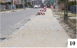 Bywają inwestycje, o których się mówi, pisze, które się pokazuje – ale mimo stosunkowo niedużego stopnia trudności skończyć się nie mogą. Zdarzają się i inwestycyjki, których specjalnie się nie nagłaśnia, ale po prostu szybko realizuje. Przykładem może być odcinek chodnika położonego tuż za granicą Szczytna – na terenie Leśnego Dworu. Chodnik był kawałek wcześniej, kawałek dalej, głupio więc byłoby tego nie spiąć. Trochę krawężników, masy bitumicznej, kostek brukowych – i efekt widać na fot. 10.