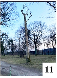 Memento mori (Pamiętaj o śmierci) – głosi stara formuła. Tabliczka z podobnym napisem mogłaby zostać umieszczona w pobliżu drzewa rosnącego tuż przy głównym wejściu na dawny cmentarz ewangelicki przy ul. Piłsudskiego w Szczytnie. Drzewo zwraca uwagę tym, że jest raczej martwe – nie ma w zasadzie nawet kory (fot. 11) . Choć niedawno prowadzono tu prace wycinkowe i kilka okazów zostało ściętych, widoczne na zdjęciu resztki sporego niegdyś drzewa zostały. Chyba po to, by uzmysłowić prawdy o przemijaniu. Przeminął przecież nawet cmentarz, na którym rosło owo drzewo.{/akeebasubs}
