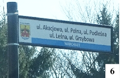 Warchały to niewielka wioska, mająca zaledwie około 50 stałych mieszkańców. Osób tu przebywających poza sezonem (np. w hotelu) i w okresie letnim jest wielokrotnie więcej, a gdyby zachować proporcje, to nie wypadałyby one gorzej od Zakopanego czy Sopotu. W Warchałach sukcesywnie przybywa domków letniskowych, stąd w wiosce mamy całą sieć uliczek. Na tyle gęstą, że odpowiednio zagęszczone napisami są niektóre tablice z nazwami ulic – na jednej z nich znaleźliśmy aż pięć takich nazw (fot. 6). Nie oznacza to, oczywiście, że w jednym miejscu nachodzi na siebie aż tyle ulic – to po prostu wskazanie do nich dojazdu. Oryginalna inaczej jest tabliczka znajdująca się przy drodze prowadzącej do