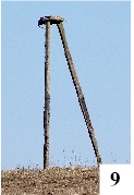 Co najmniej na razie nowej i szerszej drogi nie doczekały się Brajniki – nie było pełnej zgody mieszkańców. Niektórzy mieli różne wątpliwości i ewentualne plany trzeba przełożyć na później. Brajniki to także urokliwa miejscowość (nieco większa od Warchał) mająca walory wypoczynkowe. Specyficzną atrakcją turystyczną jest również niepozorna konstrukcja (fot. 8) widoczna z polnej drogi odbiegającej od asfaltówki w lewo, w stronę północnego brzegu jeziora Świętajno. Bezpośredniego dostępu do owego obiektu raczej nie ma – znajduje się on na opasanym pastuchem polu. To pozostałość po dawnym punkcie triangulacyjnym. Jak nazwa podpowiada (triangulum = trójkąt), słupki powinny być trzy. Jeden jednak odpadł i widać tylko mocujące go pręty (fot. 9). Całość była cząsteczką całej sieci triangulacyjnej, służącej do prowadzenie pomiarów geodezyjnych. W wybranych miejscach kraju znajdowały się także wysokie drewniane wieże. Z oczywistych powodów podobne konstrukcje wznoszono w dobrze widocznych miejscach, często na wzniesieniach. Obiekt z Brajnik to zdekompletowany kilkumetrowy żelbetowy trójnóg stanowiący tak czy owak ciekawostkę. Na warszawskim Ursynowie pod taką niby-wieżą ustawiono jakiś czas temu tablicę pamiątkową, uzmysławiającą ważność (jeszcze nie tak dawno) podobnych konstrukcji – tam wykorzystywano ją chociażby przy budowie metra. Pod koniec ubiegłego wieku tradycyjna sieć triangulacyjna zaczęła przechodzić do lamusa – została wyparta przez pomiary dokonywane satelitarnie.