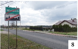 Wspomniana ulica Nowowiejskiego, prowadząca z Wielbarka w stronę Rozóg, ciągnie się… poza granice miasteczka. Tak wynikałoby z tego, co zobaczymy na fot. 8 . Widzimy, że za tablicą zamykającą teren Wielbarka mamy nadal domostwa. Kiedyś należały one do jednej z kilku kolonii wsi Wielbark, ale przy okazji przywrócenia praw miejskich sprawy z nazewnictwem należało jakoś uporządkować. Dziś to wielbarska ulica Nowowiejskiego, która kończy się jednak spory kawałek dalej. A tablica z nazwą miejscowości, choć wymieniona po latach na nową, została jednak w starym miejscu…