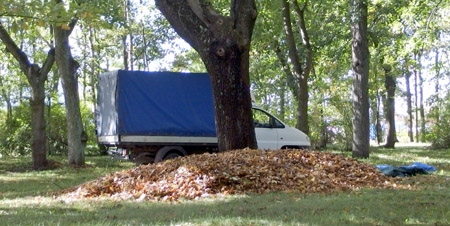 Ogólnie rzecz biorąc ów cmentarz–park jest jednak dobrze utrzymany. Gdy spacerowaliśmy po nim akurat były grabione i usuwane liście. Wokół rośnie dużo okazałych drzew, więc opadły z nich wprost nieprawdopodobne ich ilości. Załączone zdjęcie pokazuje tylko jedną z pryzm, a tych było kilka i do tego jeszcze jeden wielki wypełniony po brzegi kontener.