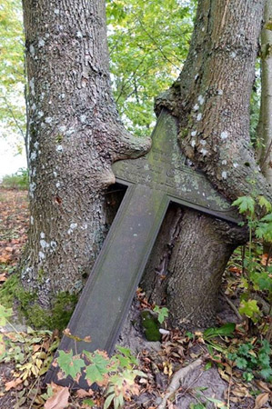 W ubiegłym tygodniu mieszkaniec Targowa przesłał nam niezwykłe zdjęcie przedstawiające scenkę z miejscowego cmentarza ewangelickiego. Widać na nim żeliwny krzyż, w który przez dziesiątki lat wrastały pnie dwóch drzew, aż powstała taka oto osobliwość.{/akeebasubs}