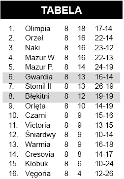 W weekend swój dorobek powiększyły oba nasze zespoły występujące w klasie okręgowej. Na uznanie zasługuje zwłaszcza Gwardia, która ograła na boisku rywala wciąż prowadzącą w tabeli Olimpię.