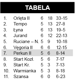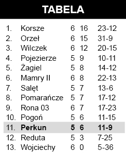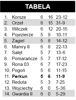 Kibice Perkuna liczyli po spadku na więcej, ale na razie zanosi się na to, że zespół z Orzyn będzie raczej patrzył na to, co u dołu tabeli. Bardziej ograny w ligowych bojach zespół z Wilkowa stworzył w Dźwierzutach więcej okazji bramkowych. Wykorzystał jedną z nich, gdy w 36. min Marcin Marszałek musiał skapitulować po silnym uderzeniu z woleja. Gospodarze próbowali coś wykreować po zmianie stron, ale trafili na dobrze zorganizowany zespół Wilczka.
