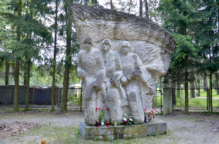 Został on wykonany w formie ściany z płaskorzeźbą przedstawiającą żołnierzy Armii Czerwonej, nad którymi powiewa, w domyśle, czerwona flaga. Na podeście widać bukiety kwiatów i znicze, znak, że ktoś jednak odwiedza to miejsce.