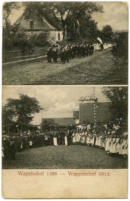 W lesie na zachód od Łupowa znajdowało się pruskie grodzisko. Wieś powstała w 1383 roku, kiedy to Prus Wopa otrzymał tu 100 włók puszczy Nida (1 włóka to 16,81 ha). Tenże Wopa prawdopodobnie towarzyszył prokuratorowi wielbarskiemu Dytrychowi w 1374 roku w trakcie wspólnego z przedstawicielami Mazowszan wyznaczania granicy mazowiecko-krzyżackiej. Być może między innymi za to otrzymał on od Zakonu Krzyżackiego wspomniane powyżej nadanie. Niemiecka nazwa wsi - Wappendorf pochodzi od imienia ich pierwszego, pruskiego właściciela.
