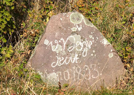 Znajduje się on przy drodze ze wsi na cmentarz, ale jest od cmentarza starszy. Inskrypcja na kamieniu jest słabo czytelna: „O. Boye denk Anno 1803”, czyli „O. [Otto?] Po polsku będzie to: „O. Boye w podzięce roku pańskiego 1803”. Jest to wersja odczytu zaproponowana przez dr. M.J. Łapo. Na podstawie tak krótkiej inskrypcji ciężko o jakieś rozbudowane wnioski. Za co mógł dziękować O. Boye? Niemal na pewno dziękował za uratowanie życia.