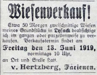 13 sierpnia 1852 r. w Spychowie urodził się Louis Franz Gustav Hertzberg. Początkowo studiował teologię. Po śmierci ojca zajął się prowadzeniem majątku (Szklarni?) W 1886 r. przekazał prowadzenie majątku bratu, Marowi Ferdinandowi, a sam zaczął pracować w Szczytnie jako prokurator. Zmarł 20.03.1912 r. Pochowany jest na cmentarzu w Raciborze.