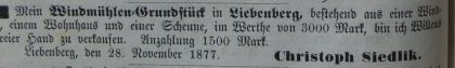 Co najmniej od lat 70. XIX w. działał w Klonie wiatrak. W 1877 r. w szczycieńskim tygodniku urzędowym Christoph Siedlik opublikował ogłoszenie, w którym informował o zamiarze sprzedaży swojego młyna. Transakcja najwidoczniej doszła do skutku i kolejnym właścicielem młyna był Max Glembotzki. Od około 1900 r. wiatrak należał do Symanzicka. W okresie międzywojennym posiadał go Hermann Krüger, który przed wybuchem II wojny światowej zbudował w jego pobliżu młyn elektryczny. Stary wiatrak stał opuszczony. Po wojnie rozebrano go i wywieziono w głąb Polski.