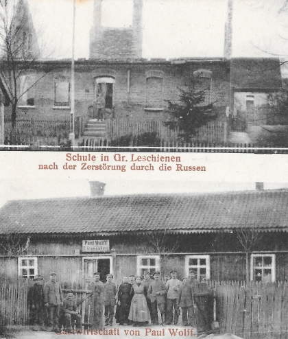 Po wybuchu I wojny światowej leżące przy samej granicy Lesiny były od razu zagrożone. 30 sierpnia 1914 r. pojawił się we wsi oddział kozaków, który uprowadził grabarza. Zamordowana przez carskich żołnierzy została również 60-letnia Marie Wischnewska. Znaleziono ją martwą w jej mieszkaniu z trzema ranami kłutymi twarzy. Rosjanie spalili tu między innymi szkołę. Pamiątką po tamtych wydarzeniach jest zlokalizowana na cmentarzu ewangelickim kwatera wojenna, w której pochowano 5 żołnierzy armii niemieckiej i 2 żołnierzy armii rosyjskiej poległych w lutym 1915 r.