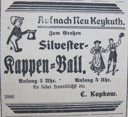 Karczma w Nowych Kiejkutach funkcjonowała już w XVI wieku. Przed I wojną światową gospodę prowadziła tu żydowska rodzina Mendlów. Nie wiadomo jednak, co się z tą rodziną działo po wojnie. W okresie międzywojennym gospodę prowadził E. Kopkow, który urządzał w niej nawet sylwestrowe bale. W 1935 roku Georg Walpuski wybudował restaurację, przed którą znajdowała się mała stacja benzynowa.