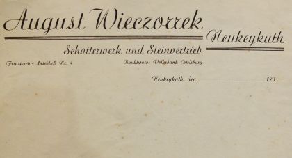 Tereny wokół Nowych Kiejkut są pagórkowate i obfitujące w duże ilości naniesionych przez lądolód kamieni, które dla gospodarujących tu dawniej rolników stanowiły duży problem. Kamienie te zbierano i układano w kopce na granicy pól, czasem jednak podrzucano problem sąsiadowi, co prowadziło do kłótni. Problem ten rozwiązał August Wieczorrek, który po ślubie w 1909 roku osiedlił się Nowych Kiejkutach. Odkupywał on za grosze kamienie i zlecał przerobienie ich na tłuczeń, który sprzedawał firmom drogowym i kolejowym. Prawdziwy rozwój jego firmy nastąpił po I wojnie światowej dzięki kolei. Wówczas zaczął on na dużą skalę handlować żwirem i kamieniami.