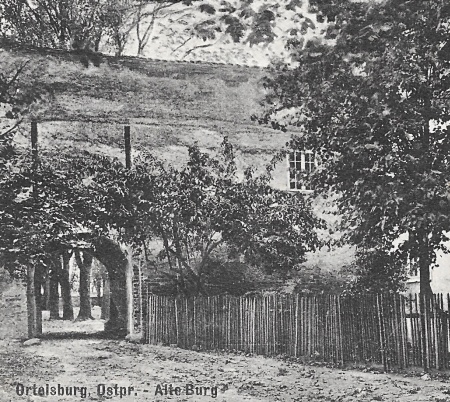 Około 1350 roku założono (prawdopodobnie na miejscu wcześniejszego, pruskiego grodziska) drewniano-ziemną strażnicę obronną. Od imienia wielkiego szpitalnika i komtura elbląskiego Ortolfa z Trewiru, który zainicjował budowę drewnianej strażnicy, jak i późniejszego murowanego zamku, nosiła ona nazwę Ortolfsburg. 24 listopada 1360 roku, jeszcze na drewnianym zamku Ortolf wydał przywilej dla osiemnastu polskich bartników, którzy osiedlili się po północno-wschodniej stronie Jeziora Długiego, dając początek należącej od 1913 roku do Szczytna Bartnej Stronie. W dokumencie tym wymieniony został również urzędujący na zamku krzyżacki prokurator Henryk Murer.