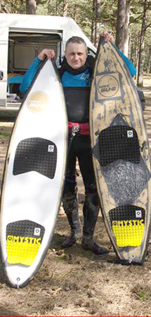 Deski, na których wtedy pływał, nie nadawały się jednak na dłuższą metę. – Były za długie, musiałem więc zainwestować w krótsze, bardziej profesjonalne. – opowiada Od 2006 roku zaczął wypływać w morze, by łapać przysłowiowy wiatr w żagle. – Wraz z Ryśkiem chcieliśmy się przekonać jak to jest. Niestety pierwsza taka przygoda nie była ciekawa – wspomina. Panowie zabrali