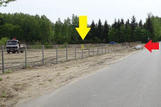 Wiele wskazuje na to, że znikło nielegalne wysypisko śmieci, przylegające do asfaltowej drogi łączącej Leśny Dwór ze szczycieńską ulicą Leśną. Hałda odpadów rozciągała się na 100 metrów. Pobliski teren, będący zresztą czyjąś własnością, ostatnio zniwelowano i ogrodzono (fot. 9). Lubiących zaśmiecać postraszono tabliczką informującą, że teren jest monitorowany i śmiecić tu nie wolno (żółta strzałka). Ktoś jednak najwyraźniej doszedł do wniosku, że powiadomienia dotyczą tego, co za ogrodzeniem, ponieważ na wyczyszczonym poboczu znowu pojawiło się trochę odpadów (czerwona strzałka).