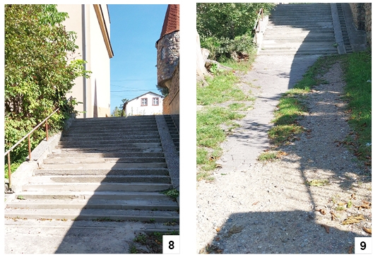 W ostatnich latach kilkakrotnie poruszaliśmy kwestię kruszących się schodów prowadzących z ul. Konopnickiej nad Jezioro Domowe Małe (w pobliżu budynku przedszkola). Poruszanie się tędy stawało się coraz bardziej niebezpieczne. Jeden z naszych Czytelników, pan Piotr, powiadomił nas, że ktoś jednak poszedł po rozum do głowy, znalazł nieduże przecież środki i pozalepiał liczne ubytki. Jak widać, schody nie wyglądają jeszcze idealnie ( fot. 8), ale lepsze to niż nic. Naszym skromnym zdaniem przydałoby się zrobić coś z samym dojściem do nadjeziornej ścieżki (fot. 9) – poprawiłoby to estetykę tego fragmentu miasta.