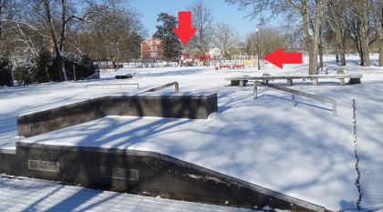 Odwołano rozmaite imprezy sportowe, zamknięte zostały hale, orliki i siłownie, nie za bardzo można nawet wspólnie trenować. Pod koniec poprzedniego tygodnia informacje o zakazie wstępu zawisły na szczycieńskich placach zabaw. Niejako na szczęście początek wiosny jest chłodny i wyjście na dwór aż tak bardzo nie kusi. „Kurka” zastanawia to, czy stosowne kartki nie powinny pojawić się także w innych miejscach. Oto np. w parku przy ul. Pasymskiej korzystanie z placu zabaw (strzałka pionowa) było już w miniony weekend zakazane, ale na pobliskim rowerowym torze przeszkód i leżącej tuż obok siłowni pod chmurką (strzałka pozioma) stosownych tabliczek nie postawiono (fot. 6). Starszym wolno – nawet w śnieżną niedzielę?