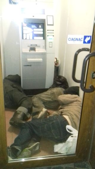 Ograniczenia ograniczeniami, zawsze się jednak znajdą osoby myślące alternatywnie. Oto jeden z naszych Czytelników w ubiegłym tygodniu parokrotnie rejestrował na ul. Polskiej scenkę widoczną na fot. 7. Trójka (czasem dwójka) mężczyzn skutecznie dowodziła wieczorową porą, że żaden koronawirus im niestraszny i postanowiła niewielką wnękę z bankomatem zamienić na noclegownię. No bo jak tu czuć zagrożenie ze strony kumpli od kieliszka… Wiadomo przecież, że wszyscy się skutecznie odkazili. Sprawą zainteresowała się w końcu policja i minilegowiska z gąbek co najmniej na razie poznikały.