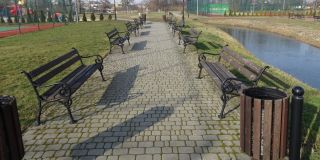 „Kronika” nie byłaby „Kroniką”, gdyby od czasu do czasu nie napisała czegoś na temat ławeczek. Przed tygodniem, w relacji ze spotkań wójt Świętajna z mieszkańcami, pojawiła się kwestia braku ławek przy drodze prowadzącej do stacji kolejowej w Spychowie. Stacja leży nieco na uboczu i trzeba do niej niekiedy wcale niemały kawałek dojść, ewentualnie dojechać. Osoby starsze potrzebują czasem w drodze do pociągu (lub ze stacji) odpocząć – ale nie za bardzo mają gdzie. Od razu zadaliśmy sobie pytanie, jak to wygląda w innych większych miejscowościach naszego powiatu. W Szczytnie ławki na ul. Kolejowej wciąż stoją (fot. 8, w tle budynek remontowanego dworca), choć mamy wrażenie, że kiedyś, także w kierunku głównego przejazdu, było ich więcej – teraz kończą się na pobliskiej wiacie autobusowej. Dworzec szczycieński leży stosunkowo blisko centrum, ale w tych miejscowościach powiatu, do których docierają pociągi, stacje ulokowano na obrzeżach czy wręcz koloniach. Kawał drogi od centrum do stacji PKP mają np. w Pasymiu, ale tam miłośnicy 3-kilometrowych spacerów mają na ścieżce pieszo-rowerowej parę ławek. Ławek (oprócz tych na peronie) nie kojarzymy jakoś z drogami między przystankami kolejowymi a centrami miejscowości chociażby w Gromie, Jerutach czy Olszynach. Jedna mała ławeczka pewnie by nie zawadziła, ale tych, którzy będą chcieli sobie gromadnie posiedzieć (już po ustaniu koronawirusa), chcemy skierować do nieodległego Myszyńca. Wprawdzie pociągi (wąskotorowe) nie jeżdżą tam od półwiecza (ulica Kolejowa została), jednak nikt nie narzeka w tym miasteczku na brak ławek. Wystarczy przejść się kawałek do niewielkiego parku i… można sobie siedzieć do woli (fot. 9). Tu na ławeczki nikt nie żałował środków – poza kadrem jest ich znacznie więcej.
