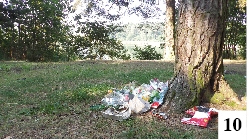 Kto woli bardziej kameralne klimaty, może udać się w jakieś zaciszne miejsce na dziką plażę. Takowa znajduje się chociażby kawałek za Lemanami, na wysokości zjazdu z drogi krajowej w stronę Wałpusza. Plaża to specyficzna – miejsce do rozłożenia koca znajduje się przede wszystkim w cieniu drzew (fot. 8), podłoże zasłane jest szyszkami mogącymi uciskać nie tylko księżniczki na ziarnku grochu, na pozbawionym roślinności nadjeziornym piasku położyć się może raptem kilka osób (fot. 9), ale miejsce cieszy się sporą popularnością. Jest tu zresztą kilka zejść do wody. Chętnych do zanurzenia się w niewielkim jeziorku, dość szybko nabierającym głębokości, nie brakuje. Amatorzy kąpieli korzystają z akwenu od wczesnych godzin porannych aż do zachodu słońca. Niestety, część osób zapomina o zabraniu ze sobą opakowań po skonsumowanych produktach (fot. 10), co działa niekorzystnie na urokliwość owej dzikiej plaży.