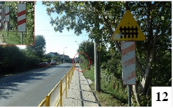 Na szczycieńskich ulicach co pewien czas wymieniane są znaki, które nie oparły się upływowi czasu lub zostały zniszczone przez wandali albo wskutek drogowych incydentów. Nie tak dawno postawiono nowe znaki przed przejazdem kolejowym na ul. Kochanowskiego. Niekiedy trzeba zadbać o cały zestaw – jak wiadomo, blisko przejazdów z każdej strony ustawia się po trzy znaki informujące o zbliżaniu się do tego miejsca. Jak widać na fot. 12 , wymiana była niekompletna. Z jakichś nie do końca zrozumiałych powodów zamontowano tylko dwie tabliczki znajdujące się bliżej przejazdu, a pierwszy z tercetu znaków pozostał niezmieniony…