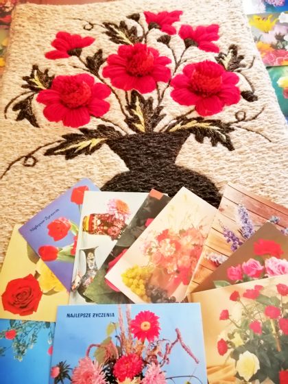 W moim domu imieniny kultywowano i każdemu domownikowi hucznie wyprawiano. Wiadomo, w pracy koleżanki mi nie odpuszczały i zawsze ze wszystkich działów na gościnę przybyły. W opisywanym roku od współpracowników dostałam zegarek na rękę. Był unikatowy i taki bardzo zabawowy. Tarczę zdobiła misternie utkana sieć i spacerujący po niej pajączek. W tym dniu otrzymałam też dużo kwiatów. A listonosz przyniósł całą torbę okolicznościowych widokówek i ogromne, tajemnicze pudło. Wnętrze kryło zwoje gazet, gdy kolejno je odwijałam okazało się, że ostatnia warstwa gazetowego opakowania kryła wymarzoną książkę. Do dziś nie wiem, kto był pomysłodawcą takiego prezentu, ależ było odwijanie i jest wspominanie!