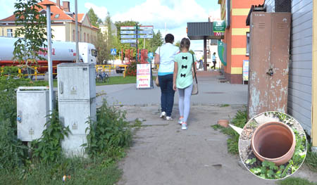 Jakiś czas temu przy Rolniczym Domu Towarowym funkcjonowała niewielka budka, która oferowała kurczaki z rożna i inne temu podobne specjały typowe dla szybkiej gastronomii. Teraz gdy jej nie ma, natychmiast powstał w tym miejscu pieszy skrót wiodący na pobliski plac targowy i do hali „Mazur”. Skrót kryje jednak spore niebezpieczeństwo. Na jego skraju wystaje nieco ponad poziom gruntu plastikowa rura o dość dużej średnicy, w której łatwo może uwięznąć stopa dorosłego człowieka. O ile jednak starsi patrzą na ogół pod nogi, to dzieci już nie, no i nietrudno sobie wyobrazić co może się tutaj przytrafić milusińskiemu.