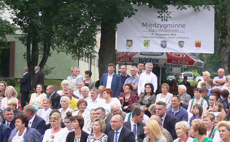 Uff! Robota w polu zakończona, zebrano plony, więc przyszedł czas na świętowanie, czyli dożynki. W naszym powiecie obchodzono je mniej lub bardziej hucznie w każdej gminie, a na ogół z obwoźnym banerem reklamującym Międzygminne Targi Przedsiębiorczości, które lada dzień (9-10 września) odbędą się w Pasymiu. Wisiał on nad głowami oficjeli i zwykłych obywateli, co widać na załączonym zdjęciu, wykonanym akurat w Rozogach. Niby nic w tym dziwnego. Transparent z daleka wygląda przyzwoicie i nic zarzucić mu nie można, gdyby nie pewne szczegóły, których z daleka nie widać. Przybliżmy więc pewien fragment banera. Czy aby na pewno herby zgadzają się z nazwami miejscowości?{/akeebasubs}