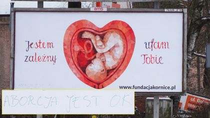 W ostatnich dniach koło jednego ze szczycieńskich rond pojawił się billboard z akcentem kojarzącym się z walentynkami – czyli sercem. Plakat jest częścią kampanii prowadzonej przez obrońców życia, a podobne billboardy zawisły w innych miastach kraju jeszcze pod koniec poprzedniego roku. U nas ktoś zdążył już z lewym dolnym rogu dodać komentarz (fot. 11). Typowy dialog polsko-polski.