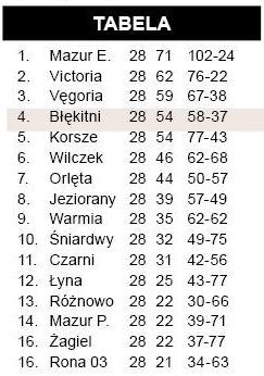 W grupie I okręgówki znane jest już pierwsze rozstrzygnięcie – bezpośredni awans do IV ligi zapewnił sobie Mazur Ełk. Pozycja druga, premiowana barażami, czeka jeszcze na chętną drużynę: Victorię lub Vęgorię.