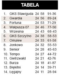 Czas wrócić do dobrej gry i jestem pewien , że dzisiaj to nastąpi – był przekonany burmistrz Krzysztof Mańkowski, który umieścił wpis tej treści na klubowym Facebooku. Nowość stanowiły powroty na boisko Przybysza i Kobusa, ale gra byłego już lidera przypominała to, co działo się w ostatnich meczach. Gwardziści mieli lekką przewagę w pierwszej odsłonie, większą już po zmianie stron, lecz niewiele z tego wynikało. Nie pomogła nawet czerwona kartka dla Chorążewicza i fakt, że sędzia przedłużył obie połowy o mniej więcej kwadrans. Jedyny gol meczu padł w 41. min, gdy Abramczyk pewnie wykorzystał rzut karny podyktowany za faul na nim samym. Czystych sytuacji z obu stron było niewiele i mecz przedłużył serię porażek szczytnian połączoną z niezdobywaniem bramek. – Uważam, że zagraliśmy przyzwoicie – podsumowuje trener Gwardii Mariusz Korczakowski. - Mieliśmy dwie wyborne sytuacje na początku. Najbardziej boli to, że wypadł kolejny zawodnik – szkoleniowiec odnosi się tu do sytuacji z końcówki pierwszej połowy, gdy w wyniku zderzenia z innym zawodnikiem przytomność na krótko stracił Łukasz Krajza, którego czekają teraz badania. – Zagraliśmy dobry mecz – kwituje trener Omulwi Marcin Wilga. – Nie popełniliśmy głupich błędów. W końcu dopisało nam trochę szczęście. Bardzo też pomogli nasi kibice.