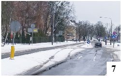 Zima na razie z nami zostaje, ale nie wszystkich musi to cieszyć. Problemy z odpowiednio szybkim odśnieżaniem i posypywaniem piaskiem bądź solą mają chociażby drogowcy. W niedzielę pomogła lekko odwilżową aura, ale np. w sobotę biało było na wielu drogach, choćby na ul. Mrongowiusza w Szczytnie (i dalej), czyli drodze wojewódzkiej nr 600. Ta trasa prowadząca do Mrągowa należy do V kategorii zimowego utrzymania. Niższej już nie ma, dlatego kierowcy nie mogą się dziwić temu, że muszą jeździć tu z wyjątkową ostrożnością. W weekend różnie wyglądały także ulice bliżej centrum. Główny pas ul. Chrobrego miał czarną nawierzchnię, ale np. lewoskręt wyglądał już gorzej (fot. 7).