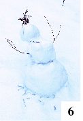 W Romanach już zimą myślą o sezonie letnim – dowodem na to jest zakończenie prac nad pomostem znajdującym się nad niewielkim jeziorem Romanek przypominającym swą urokliwością leżące niedaleko jezioro Szczycionek. Pomost pachnie świeżością, a ta przydałaby się także innym elementom przyplażowej infrastruktury. Nowa kładka, widoczna w tle fot. 5, kontrastuje z bardzo już zużytą siatką zawieszoną na boisku do plażówki. Mimo zimy na plażyczce, odległej dość znacznie od centrum wsi, utrzymuje się jakiś niewielki ruch, a znakiem tego jest bałwan z nadjeziornymi akcentami (fot. 6). O grze w siatkę mowy raczej nie ma i przez najbliższe miesiące nie będzie. Sołtys Dąbrów I (czyli miejscowości leżącej w zupełnie innej części powiatu) Czesław Lis, którego irytuje konieczność krążenia imprezowego namiotu pomiędzy Rozogami i jego wsią, zgodziłby się z nami, że w tym wypadku bardziej logiczne byłoby chowanie siatki już po zakończeniu sezonu i ponowne wieszanie jej np. w połowie wiosny.