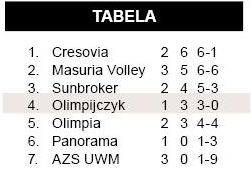 Olimpia Kisielice – Panorama Działdowo 3:1 (24, -20, 16, 21), Team Cresovia Górowo Iławeckie – Masuria Volley Giżycko 3:0 (21, 11, 23).{/akeebasubs}
